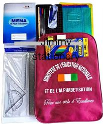Cote D'Ivoire Haiti Governo Licitação CM1 CM2 Student School Bag Kit Papelaria Set para Crianças Logotipo Personalizado Escola Papelaria Set